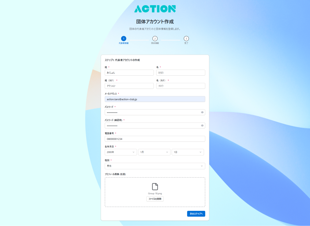 団体アカウントの作成は、ACTIONを活用する第一歩です。